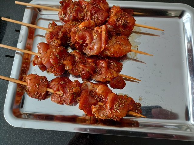 Kipspiesjes met rozemarijn en piment d’Espelette
