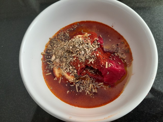 2. Meng alle ingrediënten door elkaar, behalve de karbonades.