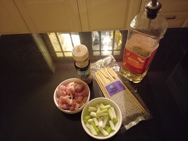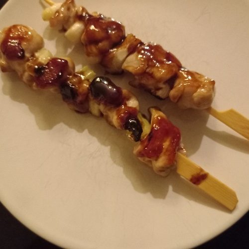 - 2 el yakitori saus kan vervangen worden door teriyaki saus