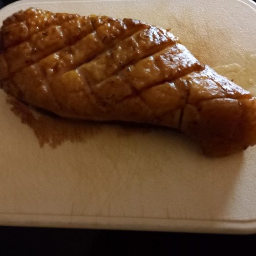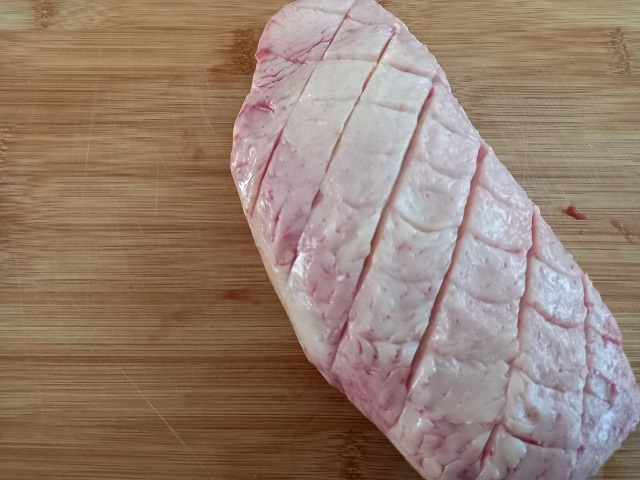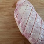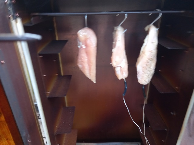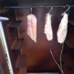 Stook je rookoven op tot ongeveer 90°. Hang de eendenborst in de rookoven en doe wat rookmot in de oven. Rook tot een kerntemperatuur van 55°. Ik gebruik hiervoor een kernthermometer die op afstand is uit te lezen. Haal de eendenborst uit de oven en laat geheel afkoelen. Snijd hem dan in dunne plakjes.