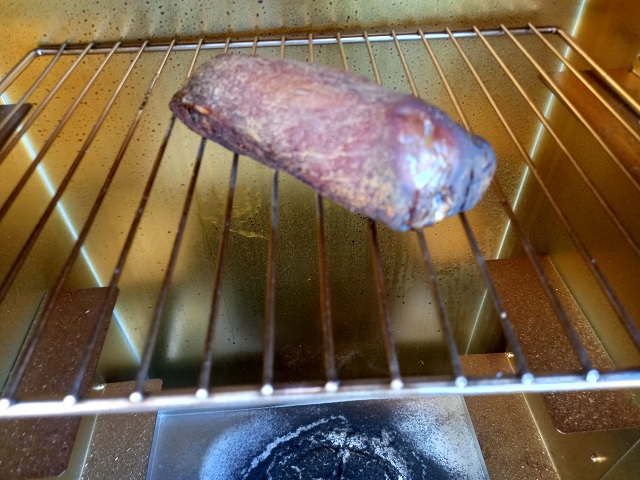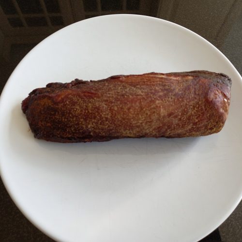 4. Haal uit de vacuümzak en wrijf de varkenshaaf droog. Leg hem op het rek in de rookoven en rook tot een kerntemperatuur van 63°. Laat afkoelen en snijd in dunne plakjes voor op een tapasplank.