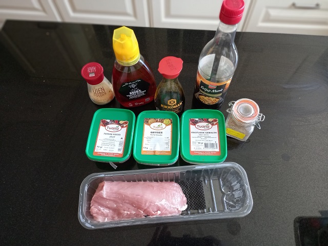 2. Maak een marinade van alle ingrediënten behalve de varkenshaas.