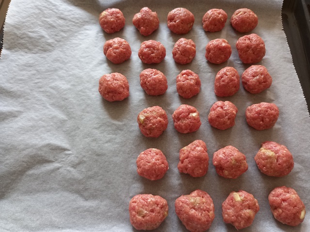 Meng in een kom alle ingrediënten voor de gehaktballetjes. Rol er niet al te grote gehaktballetjes van en leg deze op een bakplaat bekleed met bakpapier. Bak de balletjes in de oven voor ongeveer 20 minuten of tot ze gaar zijn.
