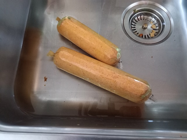 Breng een pan water op 75℃ en leg de worsten in de pan. Ze mogen nu een uur garen. Zorg dat de temperatuur tussen de 70° en 80° blijft.