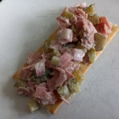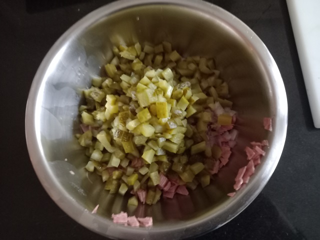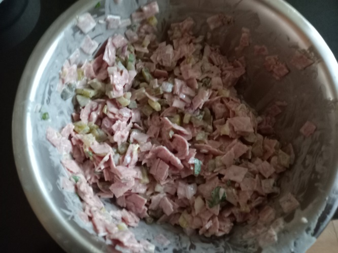 - 250 gr boterhamworst in smalle reepjes gesneden