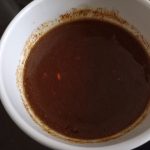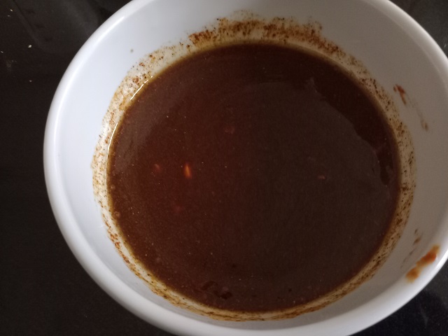 Meng in een kom de knoflook met de gember, sojasaus, rijstazijn, citroensap, kurkuma, 4 kruiden poeder, paprikapoeder, rietsuiker, tomatenpuree, zwarte peper en sesamolie. Meng dit goed door elkaar. Meng met de kipblokjes en zet voor minimaal 1 uur in de koelkast.