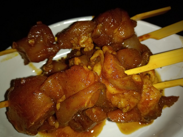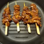 Rijg de gemarineerde blokjes kip aan de satéstokjes.