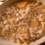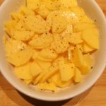 Zet alle ingredienten klaar. Schil de aardappelen,was deze onder de kraan en snijd in dunne plakken.