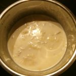 Breng de room en de melk aan de kook. Snijd intussen de camambert in kleine stukjes. Zodra de melk-room kookt voeg de stukjes camambert toe. Breng terug aan de kook. Roer regelmatig door. De kaas moet zoveel mogelijk oplossen. Dit lukt niet helemaal. De korst van de kaas lost niet op. Dit is niet erg.