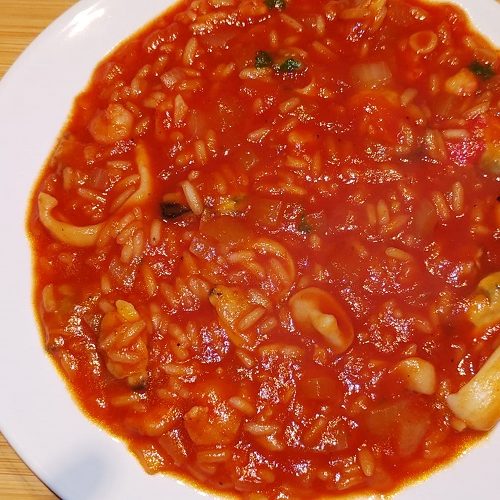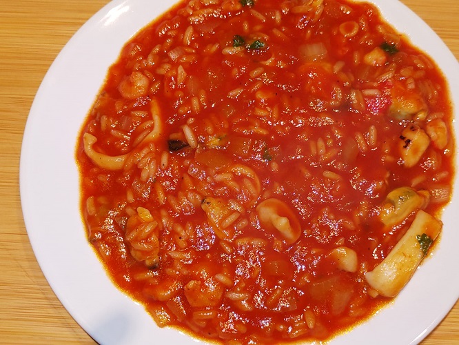 Arroz de marisco (rijst, tomaten en zeevruchten, Portugees recept)