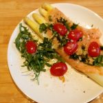Maak een dressing van 1 deel citroen en 3 delen olijfolie. Breng verder op smaak met wat zout en peper. Verdeel de asperges over de borden. Verdeel de plakjes zalm over de asperges. Besprenkel met wat van de dressing. Verdeel hierover de verse kruiden, de kerstomaatjes en de Italiaanse kruiden. Sprenkel nog wat van de dressing over de kruiden. Maak het gerecht af met wat geraspte Parmezaanse kaas.
