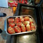 2. Halveer de avocado’s en haal de pitten eruit. Snijd ze nogmaals in de lengte doormidden en pel de schil eraf. Snijd in stukjes. Besprenkel met het sap van 1 citroen. Snipper de uien en snijd de tomaatjes doormidden.