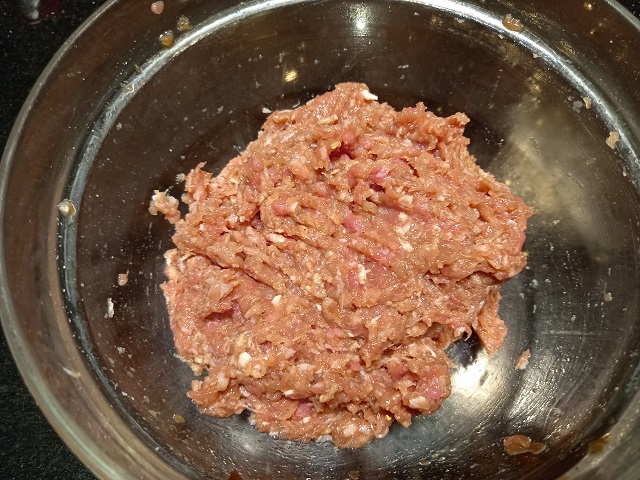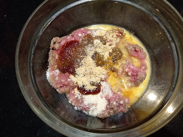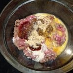 Doe alle ingrediënten voor de burgers in een kom.