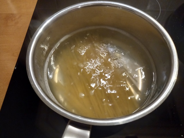 Kook ondertussen de pasta volgens aanwijzingen op de verpakking.