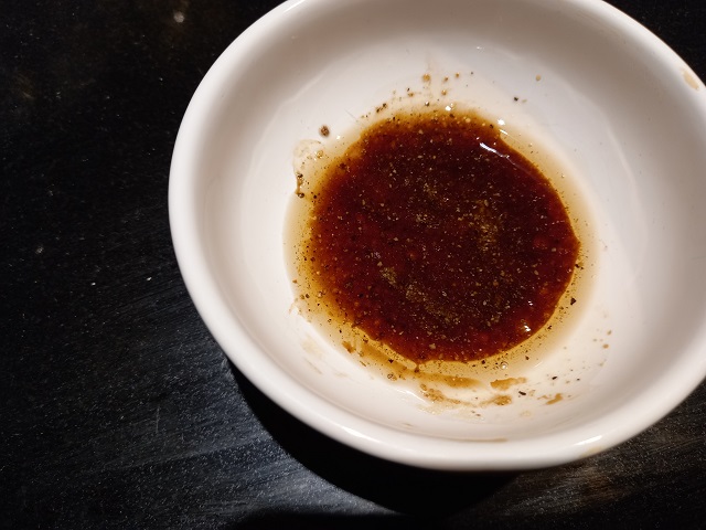 Maak de saus door de oestersaus, sojasaus, suiker, witte peper en sesamolie te mengen in een kommetjes.
