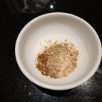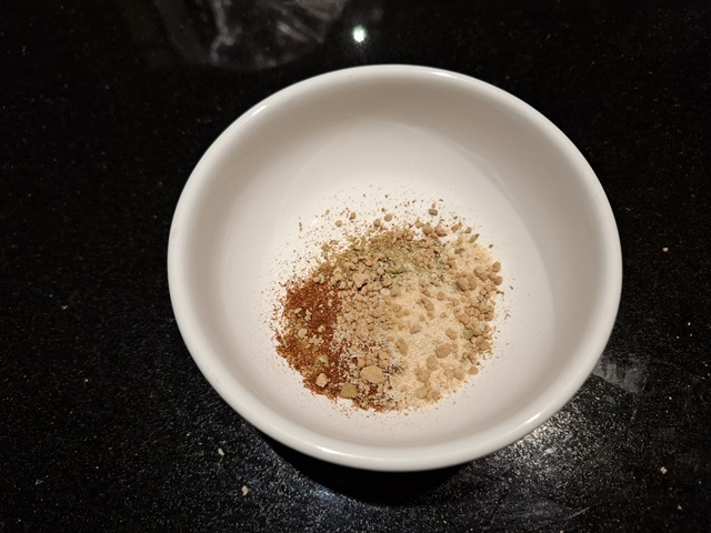 Meng alle kruiden door elkaar in een klein schaaltje.