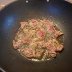 • 200 gr flank steak (vinkenlap, bavette) in repen gesneden
