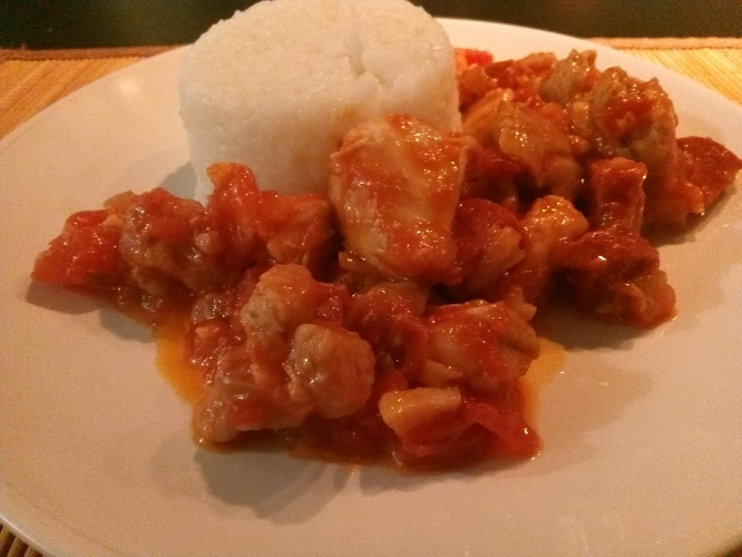 Verdeel het gerecht over de borden en geef er rijst bij.