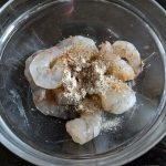 Leg de garnalen in een kom en meng met de cajun kruiden, knoflookpoeder, zout en peper. Meng dit goed door elkaar.