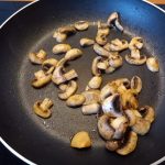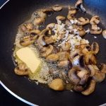 Verhit 1 el. boter en de olijfolie in een koekenpan en bak de champignons met wat zout en peper tot ze een mooi kleurtje hebben, ongeveer 5 minuten.