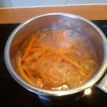 Kook de wortelreepjes 5 minuten voor. Giet af en laat goed uitlekken.