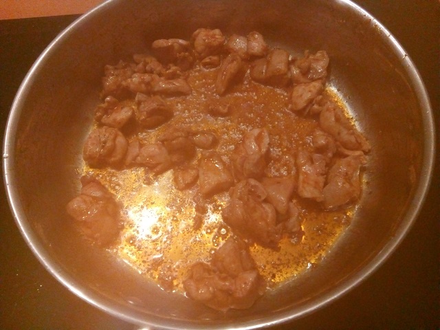 Verhit een scheut olijfolie in een hapjespan en bak de kipblokjes aan alle kanten aan. Voeg wat zout, peper, piment d'espelette en paprikapoeder toe. Roer goed door elkaar. Kook de rijst volgens aanwijzing op de verpakking.