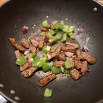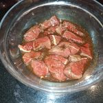- 200 gr entrecote in 1 cm dikke reepjes tegen de draad gesneden
