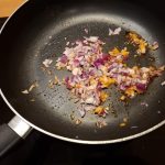 Fruit de ui in de vrijgekomen olie tot deze glazig is.