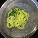 Maak slierten van de spaghetti met bv. een spiraalsnijder of dunschiller