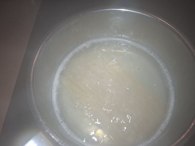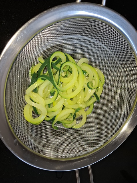 Kook de spaghetti volgens aanwijzingen op de verpakking in hetzelfde water als waar de courgettini in gekookt is. Giet af.