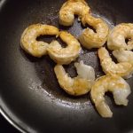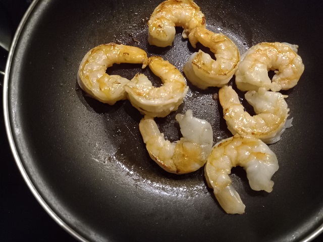 Verhit in een koekenpan de andere el. olie en bak de garnalen aan beide zijden tot ze mooi rose zijn.