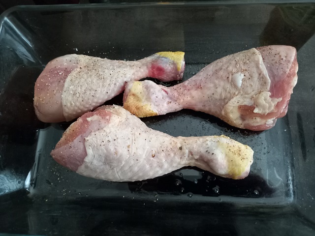 Verwarm de oven voor op 190℃. Boven en onder warmte. Dep de drumsticks droog met keukenpapier. Vet een ovenschaal in met wat zonnebloemolie. Leg de drumsticks in de ovenschaal en bestrooi met wat zout en peper.