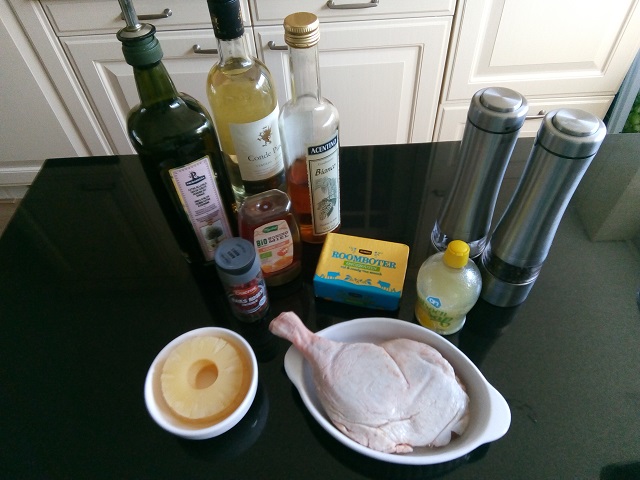 Zet alle ingrediënten klaar. Snijd de ananas schijven in stukjes.