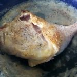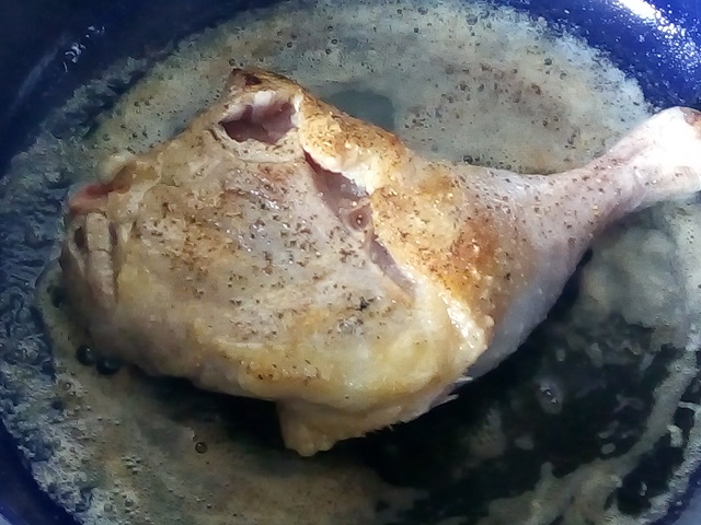 Verhit in een braadpan de boter met de olie. Braad de eendenbout aan alle kanten aan. Voeg zout, peper, de roze peperkorrels, de witte wijn, citroensap, de honing en de witte wijn azijn toe. Dek af met het deksel en laat 30 minuten zachtjes stoven. Voeg de stukjes ananas toe en laat nog 20 minuten stoven.