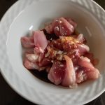 Maak de marinade voor de kip doorde 3 ingrediënten bij elkaar te doen in een kommetje en goed door elkaar te roeren.
