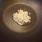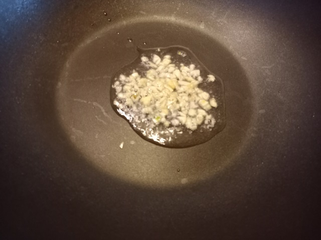 Verhit de olie in een wok op middelhoog vuur en fruit de knoflook. Voeg na een paar seconden de gember toe.