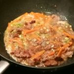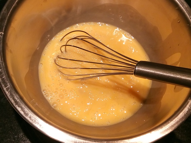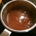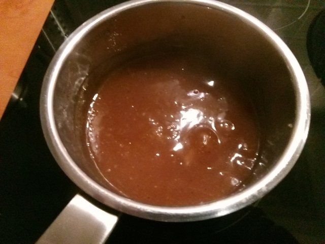 Terwijl de omelet ligt te bakken maak je de saus. Doe alle ingrediënten in een steelpannetje en breng aan de kook. Blijf voortdurend roeren tot de saus dikker wordt.