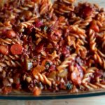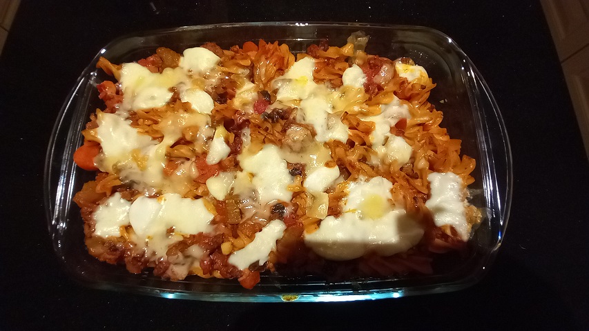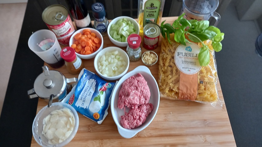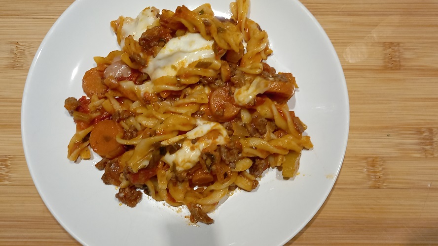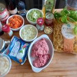Zodra de pasta gaar is meng deze door het gehaktmengsel.