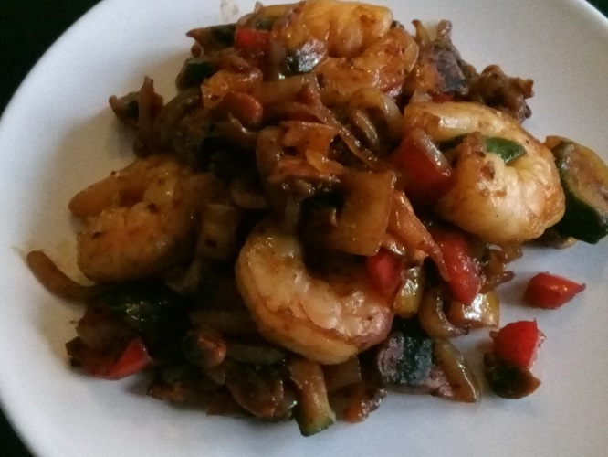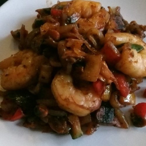 3. Voeg de garnalen en de sojasaus toe en wok deze mee tot ze mooi roze zijn. Dit duurt zo'n 10 minuten. Verdeel over de borden. Geef er eventueel rijst bij.