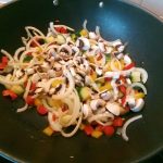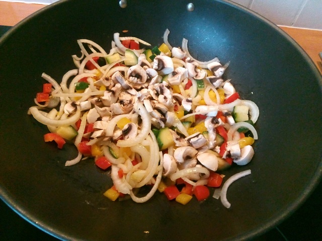 2. Verhit de olie in een wok en voeg alle groentes toe. Voeg zout en peper toe en bak ongeveer 10 minuten.