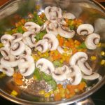 4. Voeg de champignons toe en bak de mee tot ze een kleurtje krijgen.