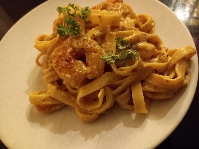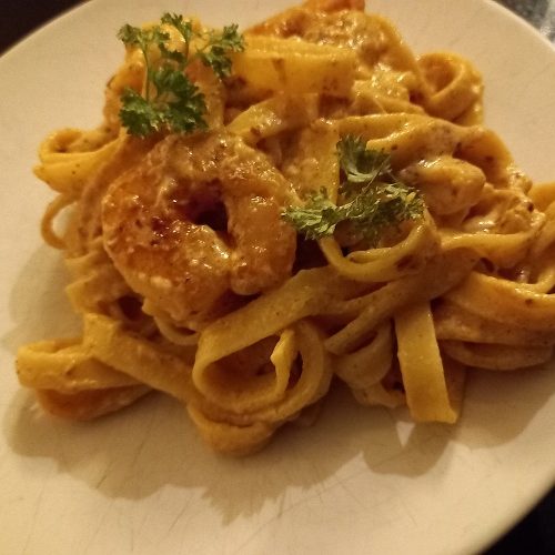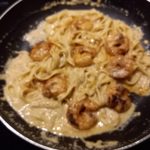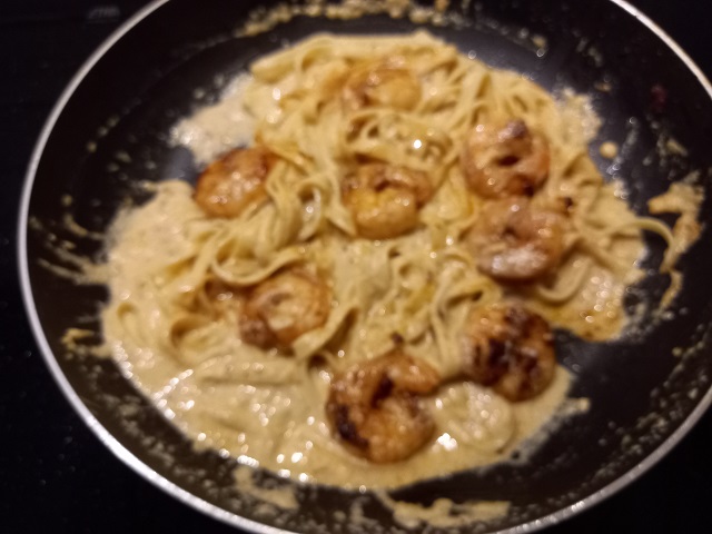 7. Voeg de garnalen toe en laatdeze nog even doorwarmen.