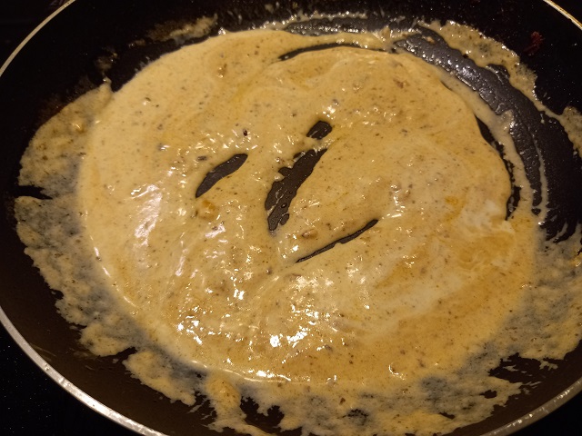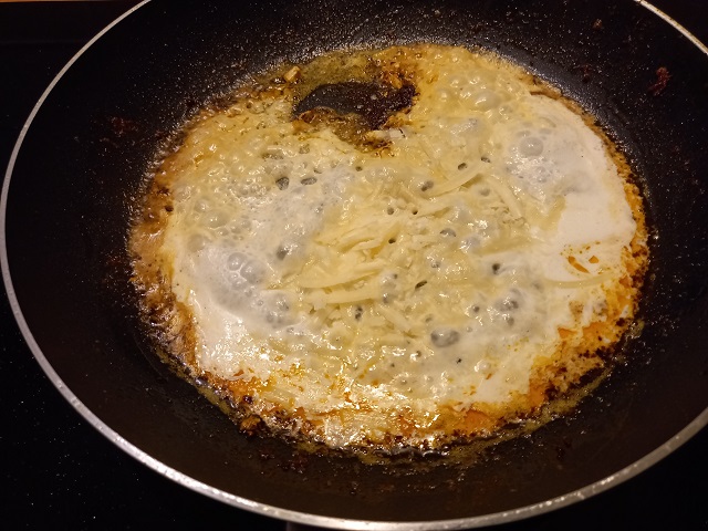 5. Voeg de Parmezaanse kaas toe en laat deze in de kookroom smelten.