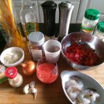 1. Zet alle ingrediënten klaar. Pel en snipper de ui en de knoflook. Snijd de tomaten in blokjes (indien nodig)