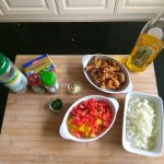 Zet alle ingrediënten klaar. Pel en snipper de ui en de knoflook. Maak de paprika schoon. Verwijder de zaadlijsten en snijd in blokjes. Snijd de bieslook fijn.