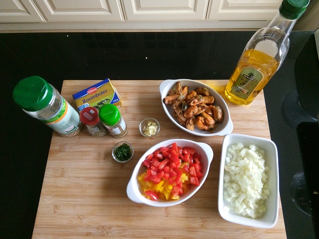 - 300 gr gekookte mosselen zonder schaal (diepvries)