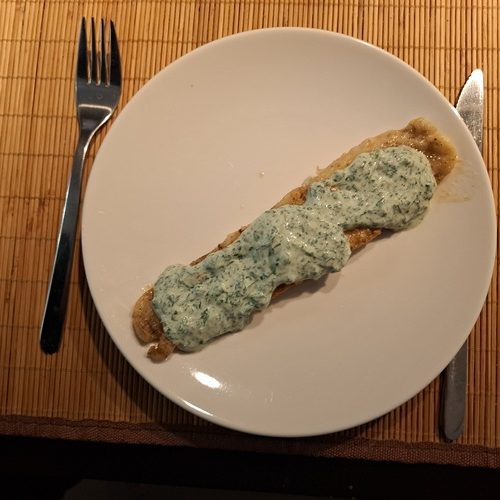 Doe het basilicum met steeltjes in de keukenmachine en voeg de azijn en 2-3 eetlepels water toe. Je kunt ook een hoge kom en een staafmixer gebruiken. Pureer het geheel tot een gladde saus en meng de yoghurt en gemalen koriander erdoor. Breng het sausje op smaak met zout en peper en verdun het eventueel met nog een scheutje water, het mag een vrij dunne saus zijn.