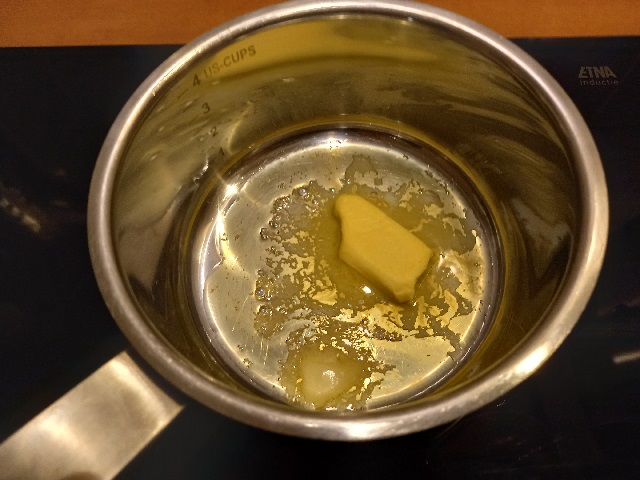Smelt de boter in een pannetje. Zodra de boter gesmolten is haal dan het pannetje van de warmtebron.