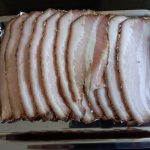Verdeel de karbonades over de borden en geef er een passend garnituur bij. Ik gaf er gebakken plakjes kriel met champignons bij.