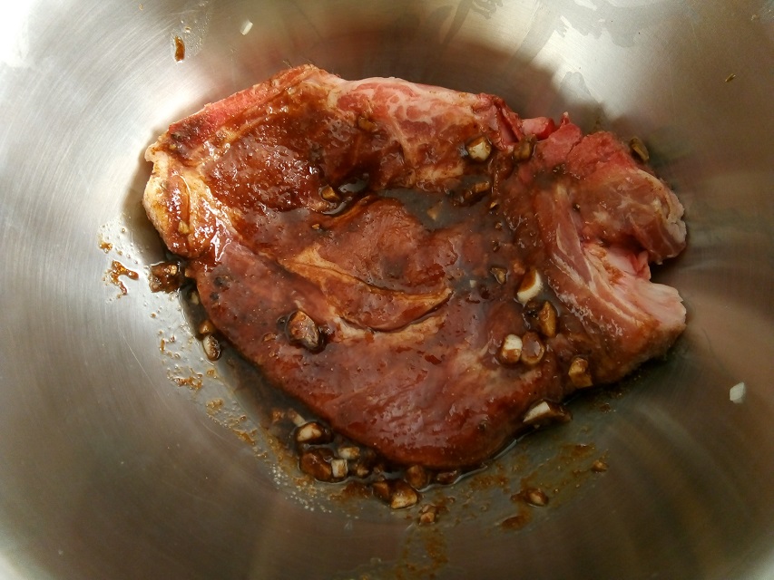 Meng alle ingrediënten tot een marinade behalve de karbonades in een kom. Besmeer beide zijden van de karbonades met de marinade. Leg de marinades in de kom en dek af met huishoudfolie. Zet voor minimaal een half uur in de koelkast.